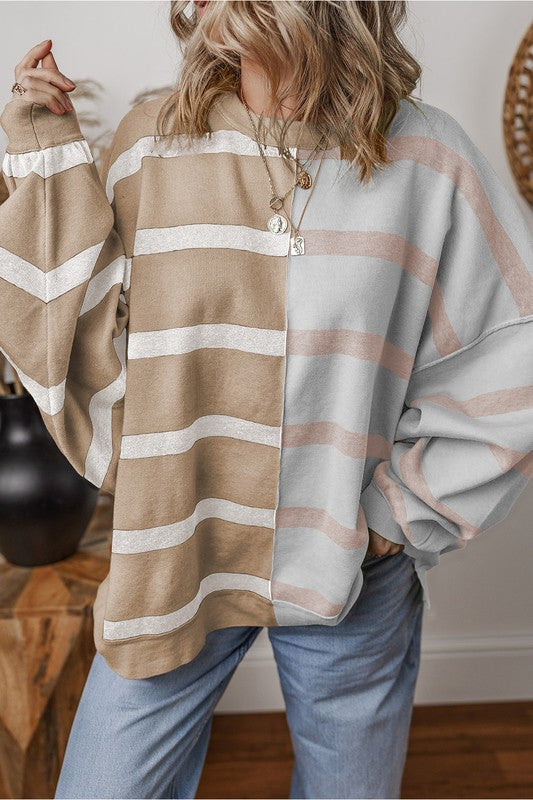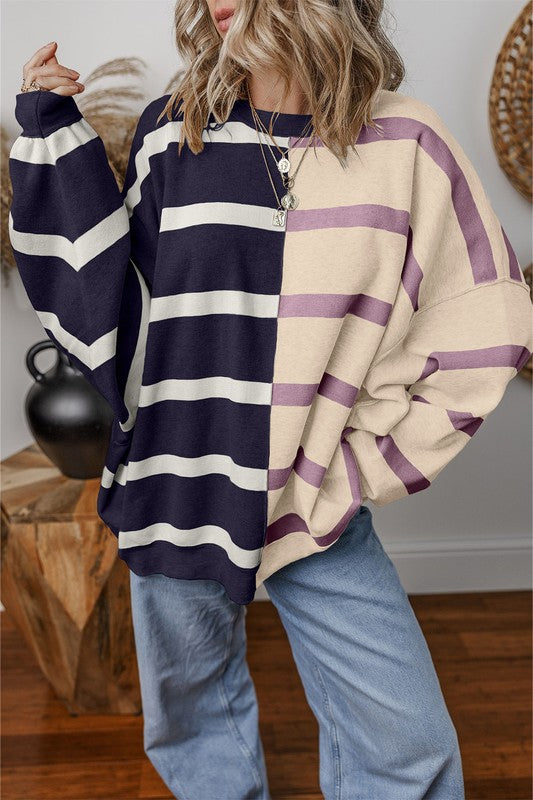 Oversized Contrast Printed Dropped Shoulder Top