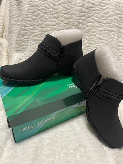 Fashioned to wear anywhere the jalia bootie from easy street is designed to meet your comfort needs. The braided overlay gives this classic silhouette a new look. Enhanced with an easy motion by easy street ultra-light insoles help provide maximum comfort with every step.