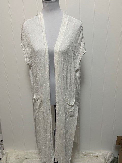 Get cozy with the Size Medium Favlux cream color cardigan, perfect for layering! With its sheer material and long length, you'll feel comfortable and stylish all day long. The Favlux brand adds a touch of luxury to your wardrobe.